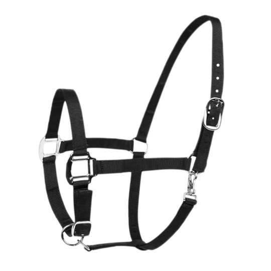 Dit halster is verstelbaar bij neus en hals. Het heeft een goede riemsluiting waardoor deze niet onverwachts los kan schieten. Ook heeft dit halster sterk metaalwerk.