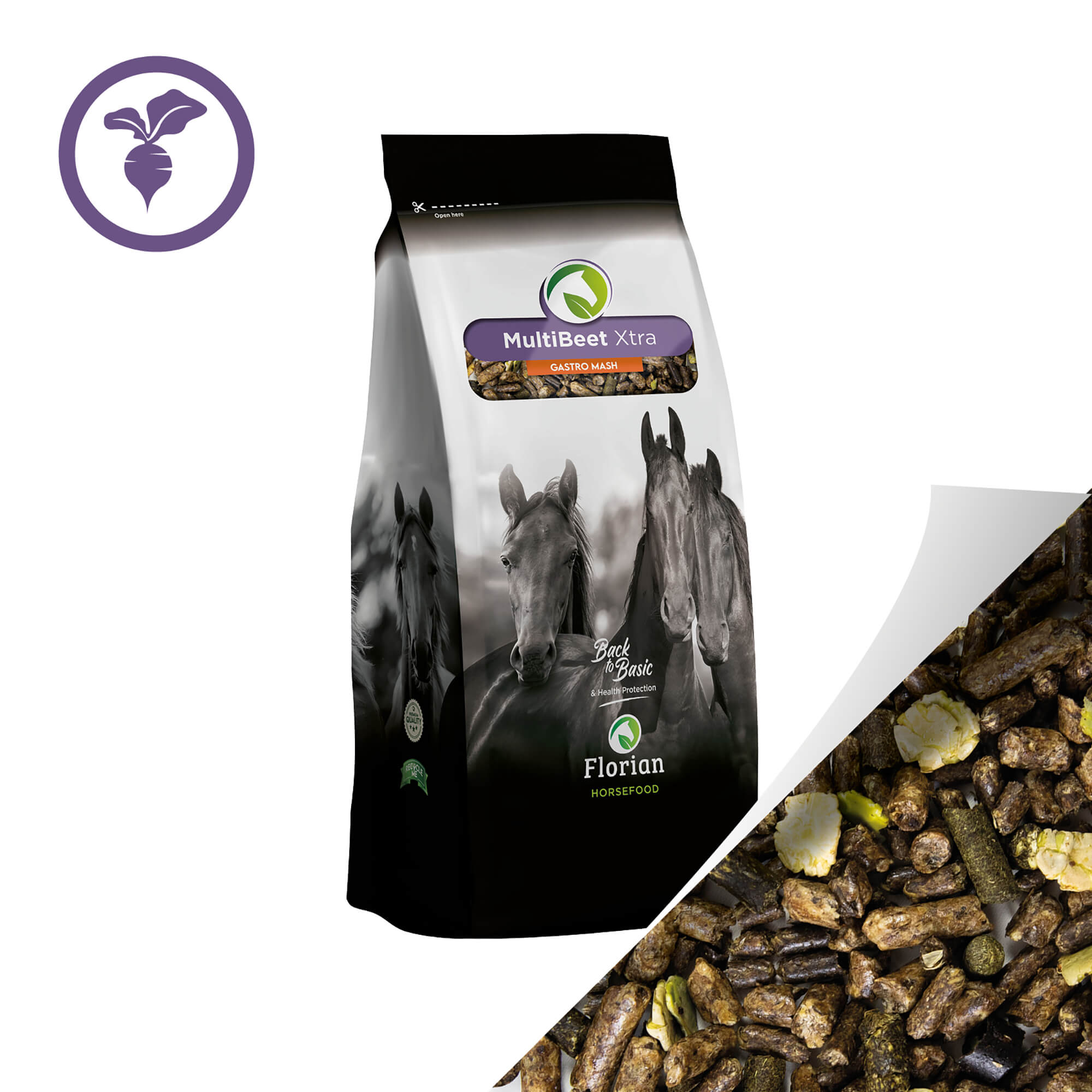De MultiBeet Xtra is ons gezonde alternatief in de wereld van de weekproducten! De Multibeet Xtra is een zorgvuldig samengestelde combinatie van bietenpulp en bolkaf, met daarbij zeer goed verteerbare vezels uit timothee, esparcette en appelpulp voor de smakelijkheid. Ideale ruwvoeraanvulling voor magere, schrale (sport)paarden om weer perfect in conditie te komen. De mash is volledig graanvrij en bevat een zeer laag suiker- en zetmeelgehalte waardoor hij prima geschikt is voor paarden die gevoelig zijn voor suikers.